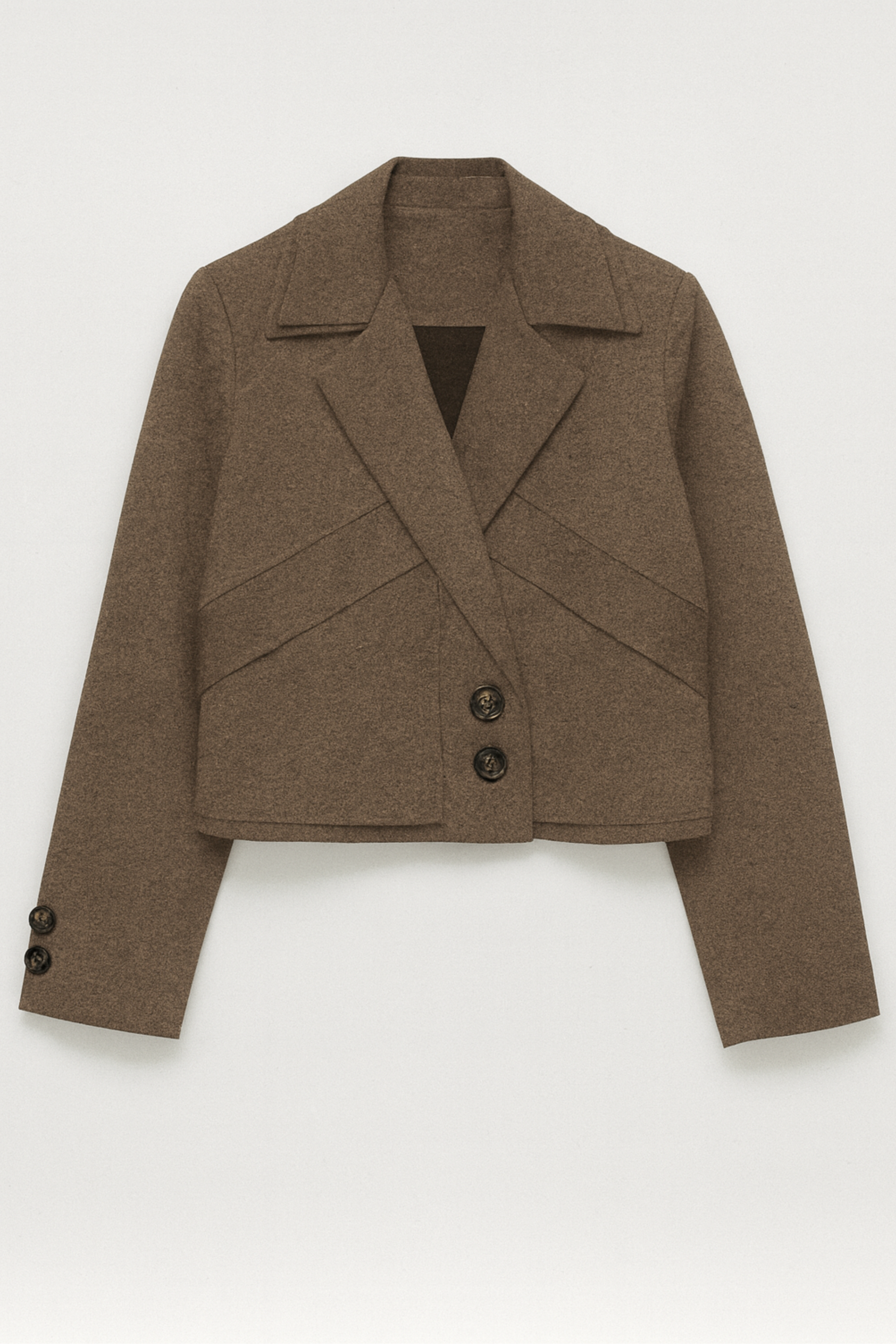 Nuestro Blazer boxy es una pieza contemporánea diseñada para estilizar el torso y realzar cualquier look. Su diseño incorpora cortes diagonales que crean líneas arquitectónicas y una estructura impecable. El largo aporta modernidad sin perder elegancia, mientras que los botones frontales dobles y los detalles en mangas tipo sastre añaden un toque cómodo.
