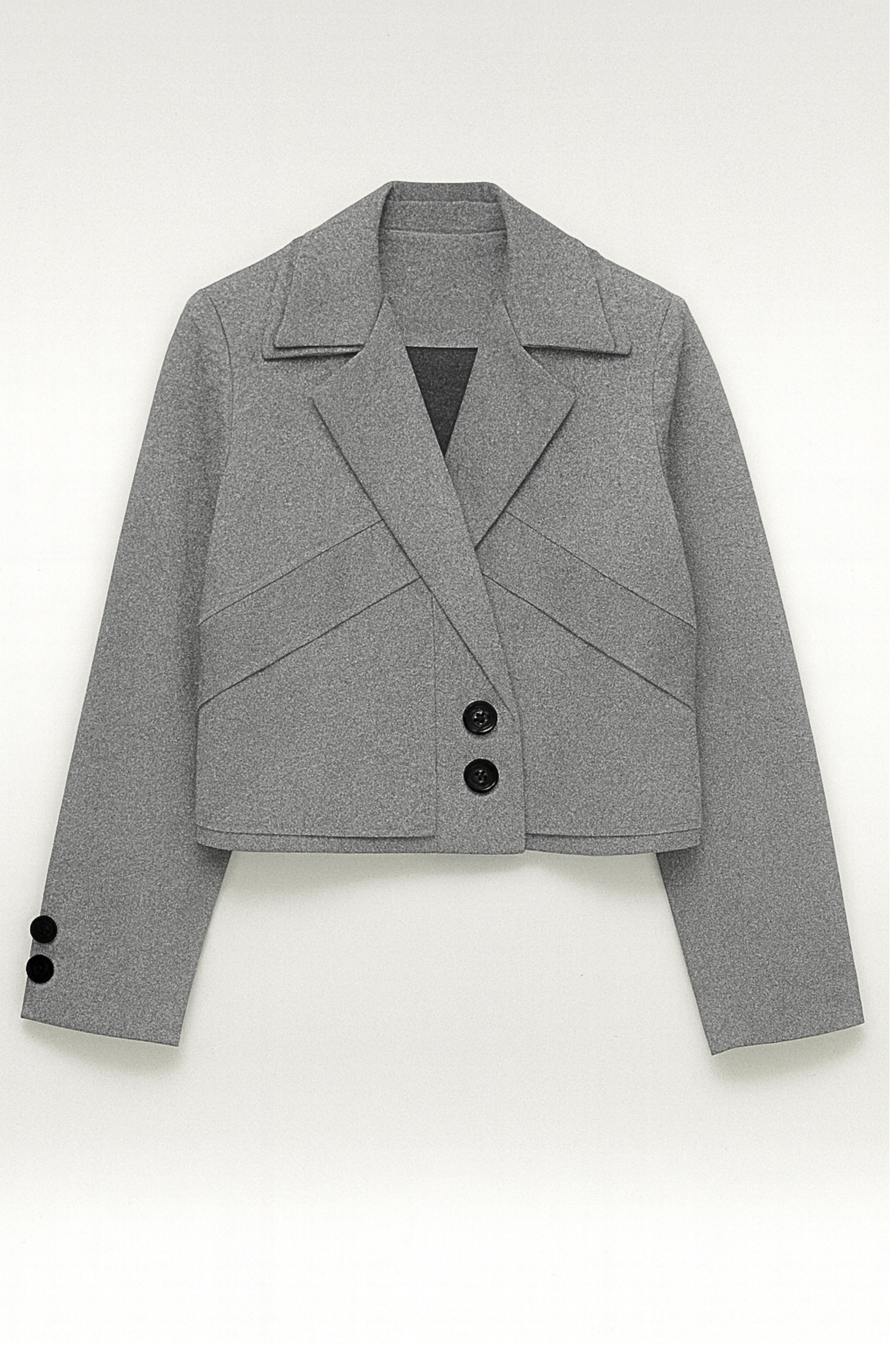 Nuestro Blazer boxy es una pieza contemporánea diseñada para estilizar el torso y realzar cualquier look. Su diseño incorpora cortes diagonales que crean líneas arquitectónicas y una estructura impecable. El largo aporta modernidad sin perder elegancia, mientras que los botones frontales dobles y los detalles en mangas tipo sastre añaden un toque cómodo.